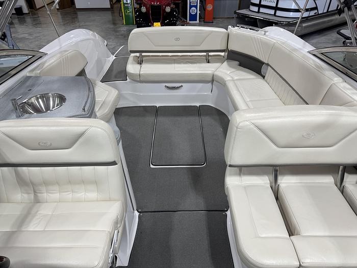 !!! Only 338 Hours !!! Twin Mercruiser 350 MPI Mags !!! This is a very clean 30’ bow rider equipped with twin Mercruiser 350 MPI mags, bravo three drives, bow and cockpit cover, bow and cockpit flooring, Bimini Top, enclosed head, extended swim platform, AM/FM stereo, and more. Price does not include Trailer but we have used if available for $7900 or new for $10,900. Financing and delivery are available. We accept trades.