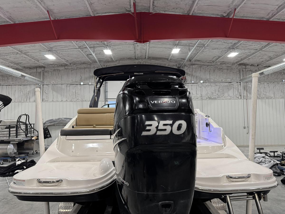 !!! Mercury 350HP Four-Stroke Outboard !!! Only 352 Hours !!! Boat is on the Lot Now!!! This 27 foot deck boat is equipped with a mercury 350 hp four stroke outboard, bow and cockpit cover, arch, Bimini Top, enclosed head, bow and cockpit flooring, Bluetooth stereo, walk-through transom, and more. Price does not include Trailer but we have used if available for $4900 or new for $6900. Financing and delivery are available. We accept trades.